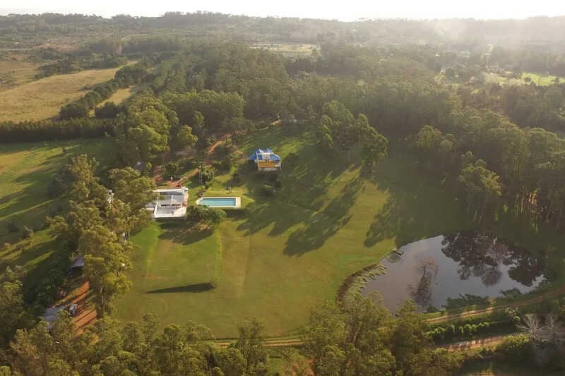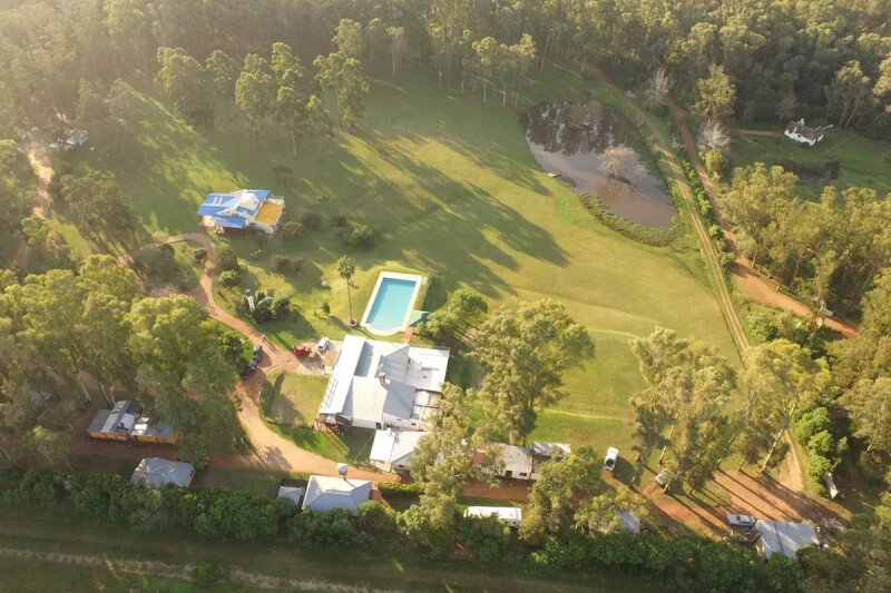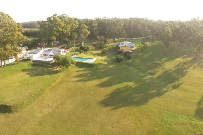 Spectacular 200 m2 barbecue house, for 200 people, bar, 6 bathrooms and 4 showers and large terrace overlooking the park. The laundry room is located in a separate room inside the barbecue house.The ranch has a recreational space for children.It also has a large pool of 18 x 25 m. with a roofed bar.The park has a large lake with autochthonous fauna, a profusion of flora and trees around the perimeter.Maintenance warehouse. The ranch has a 10,000 liters water tank and supply of 2,000 liters for the guest's houses. It has a water well and running water service.
