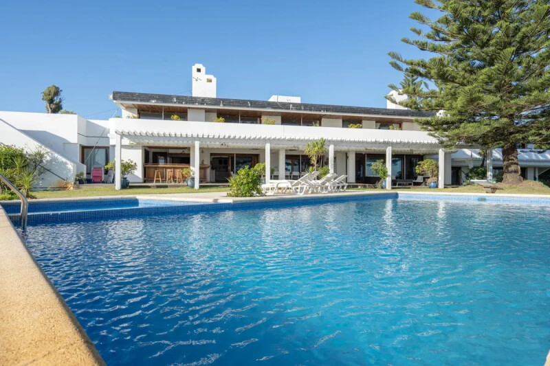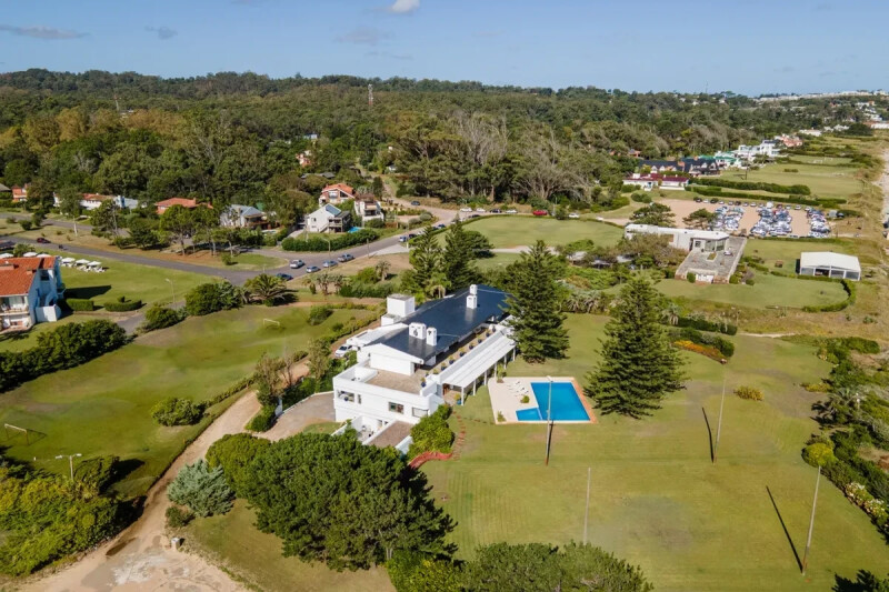 Located in Solanas, Punta Ballena, this impressive residence boasts a solid and traditional construction, with 70 meters of frontage on the sea and unique views of the sunset and Lomo de la Ballena. Developed on a plot of 6,609 m2 (1.63 acres), the three-story residence has a built area of 1,173 m2 (12,626 sqf). On the lower floor, there is an entrance hall, a spacious living room in two sections and with different levels, with a stove, a dining room with a table for 10 people, 2 bedrooms (en suite), a toilet, an elevator, a kitchen with a breakfast area, and a laundry room. The staff room accommodates two people and has a bathroom. The terrace courtyard has a clothesline and dual access to the kitchen and gym. All rooms are very spacious, have large windows with views of an extensive and well-kept park - with a pool - and the sea. There is a large terrace with a table for 16 people and a living room overlooking the park. There is also a grill area with a bar, a gym or game room with a large dressing room with a sauna and a full bathroom. The upper floor has the master suite with a dressing room that connects to the office, and three other bedrooms (en suite). All bedrooms have large windows with sea views and access to a large terrace overlooking the park. There are electric radiators and air conditioning in two of the suites. There is also a caretaker's house with a separate entrance. A large plot in front of the house has a well-kept park and a 20 x 60 m soccer field. The residence has two entrances and exits on two streets. The lower level has a garage for three cars with automatic doors, a tool room, a laundry room, a machinery room, and a storage room. Access to this level is possible by elevator and stairs from the kitchen.