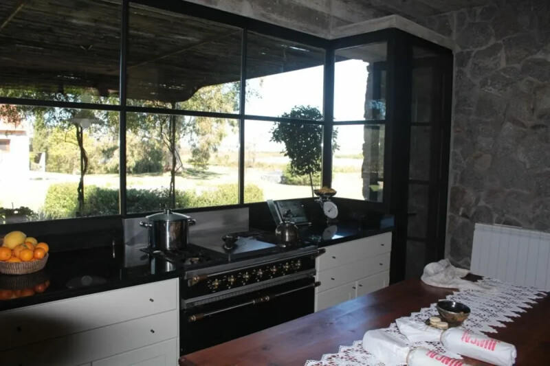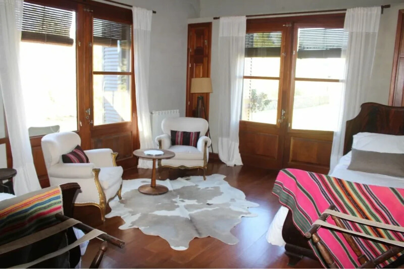 Wooden floors of lenga patagonica and traditional terracotta from Salta, Argentina. Solid wood masonry, handmade oak. Double glasses External louvers around the perimeter of the house. Local quarry stone already extinct. 4 stone fireplaces