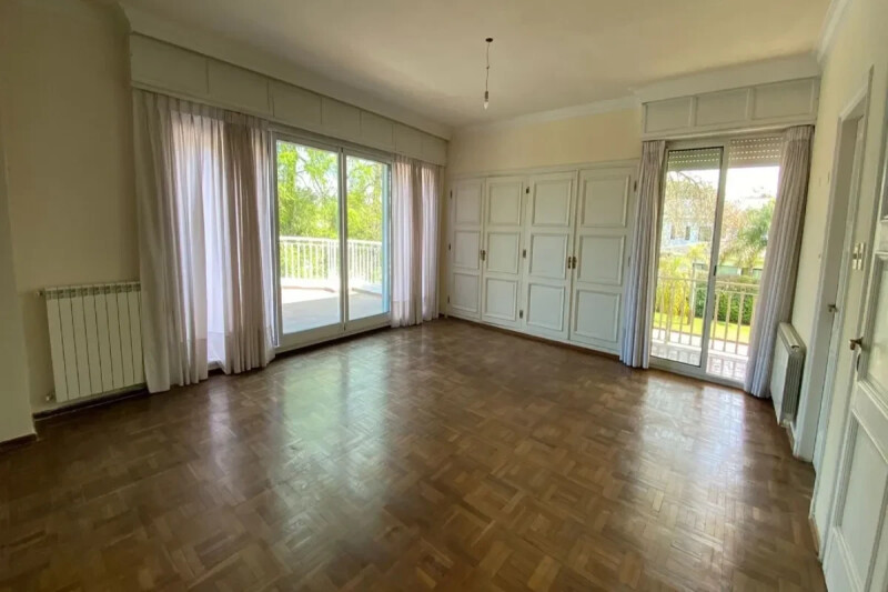 Important residence built in 1956, with some reforms, in one of the most attractive areas of Carrasco. With 650 m2 built on a plot of 1800 m2. It was for several years the residence of European ambassadors. Ground floor, Entrance Hall, large living room with fireplace, living room with fireplace, separate dining room connected to the kitchen and winter garden. Heating with gas radiators. toilet. Kitchen with office. laundry room and 2 service bedrooms. Top floor, two bedrooms and the Master, with two bathrooms. PA2: 2 bedrooms, a bathroom and a playroom. Good garden with swimming pool. Two car garage.