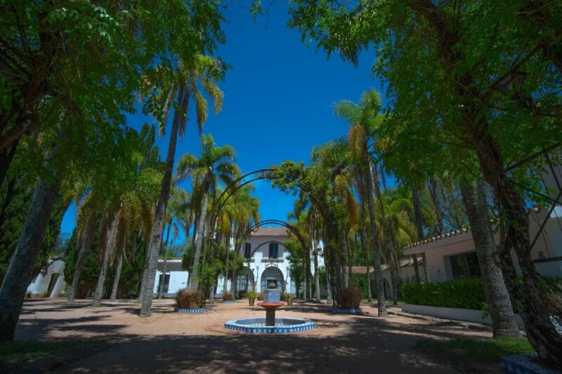 San Pedro de Timote currently has some 6,575 square meters built on a 97-hectare property. Having become a Hotel de Campo after the death of Dr. Alberto Gallinal, San Pedro de Timote has been maintained and significantly improved. In the part of rooms, it has two large blocks, one the main house and the other the so-called hostel. Between them two total 39 rooms. The two of them together with the Church and the kitchen and Restaurant form a block with a large patio and a large, wooded garden. On the other hand, it has a convention room for 150 people that has another room below, normally used as a restaurant for events. Within this first block there are three swimming pools, two open and one closed, and the reception, which is located under a 300,000-liter tank that provides water to the entire room. Continuing with the facilities after the church is the carpentry, which is in operation with the original machinery of the ranch. After that comes a series of buildings that include a mechanical workshop, a tambo, a silo and rooms for the ranch staff. At the end there are two houses that belonged to the ranch cabins and next to them is what used to be the Hereford cabin.